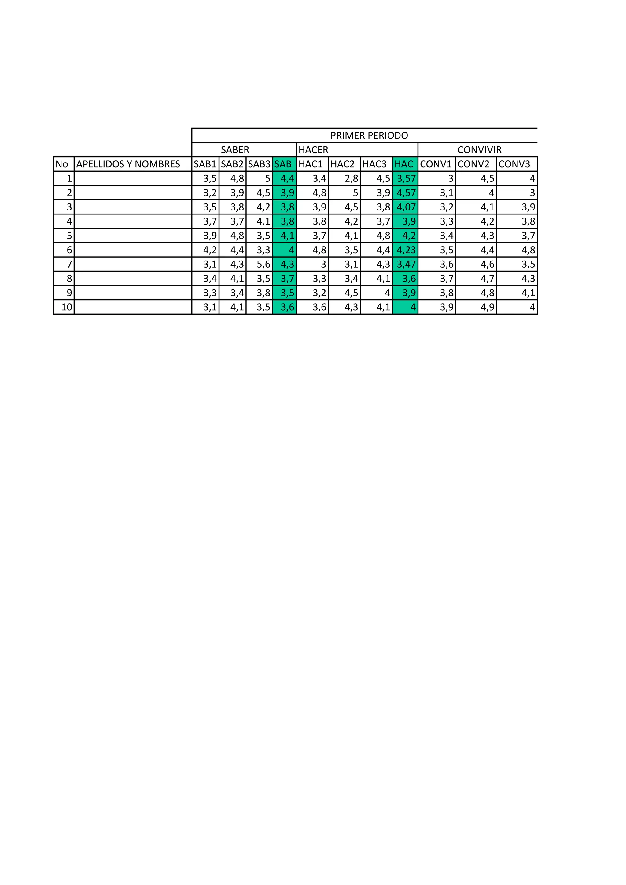 Le document présente des résultats statistiques sur les performances d'étudiants sur plusieurs périodes. Chaque période inclut des moyennes de différents critères d'évaluation, notamment des compétences spécifiques. Les données soulignent des tendances et des variations dans les performances au fil des périodes.