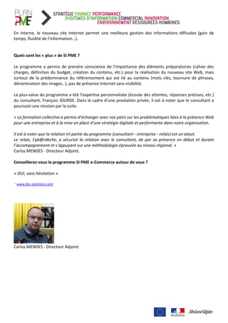 Fluides Pétrole Services (FPS) est une PME spécialisée dans le stockage et la distribution de gaz et autres fluides, avec un chiffre d'affaires de 2 500 à 3 000 keuros et 12 employés. L'entreprise a refondu son site internet pour améliorer sa visibilité et ses services en ligne, renforçant ainsi son image et sa présence commerciale. Le programme Si PME a également permis d'améliorer la stratégie digitale de FPS via un accompagnement personnalisé.