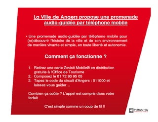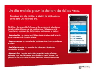 Le document traite de l'importance croissante du marketing mobile dans le secteur du tourisme, mettant en avant des statistiques sur l'utilisation des mobiles à travers le monde. Il décrit les méthodes et les avantages du marketing mobile, soulignant son efficacité pour atteindre les consommateurs et améliorer l'expérience client. Les différentes plateformes et outils, tels que les SMS et les codes 2D, sont également abordés, démontrant leur potentiel d'engagement client.