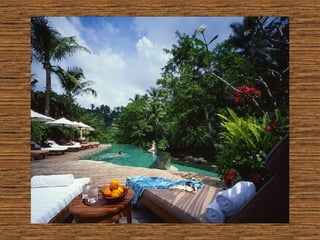 Le document évoque le tourisme rural et cite le Four Seasons Resort de Bali, un exemple de destination prisée. Il mentionne le coût élevé de 750 euros par nuit. Enfin, il termine sur une note encourageante à se concentrer sur le travail.