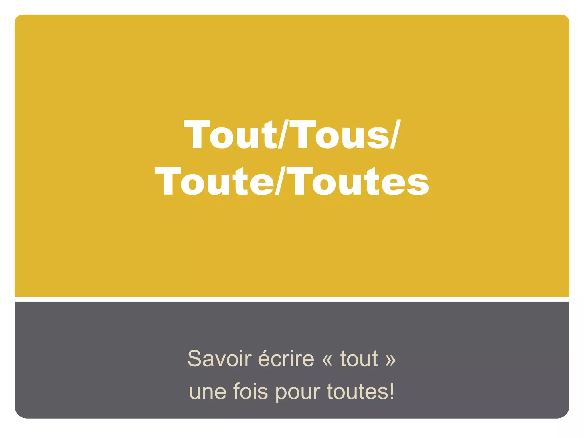 Le document explique les différentes utilisations du terme « tout » en français, le classant en déterminant, pronom et adverbe. Il fournit des exemples pour illustrer chaque catégorie, souligne les règles d'accord, et propose des exercices pratiques pour mettre en œuvre cet apprentissage. L'accent est mis sur l'importance d'accorder correctement « tout » en fonction de son rôle dans la phrase.