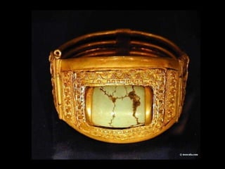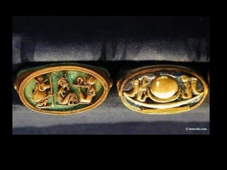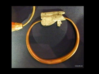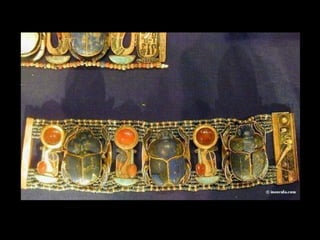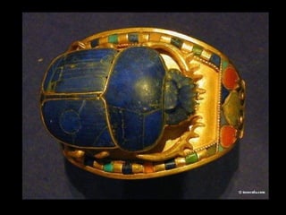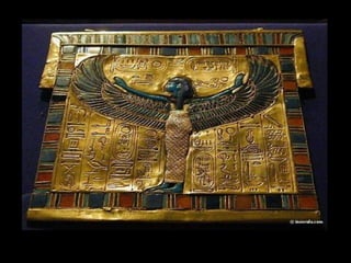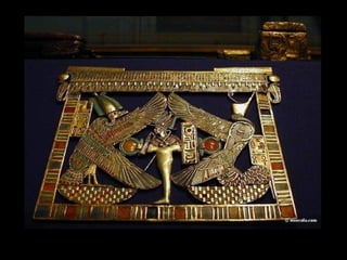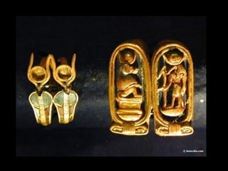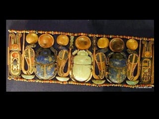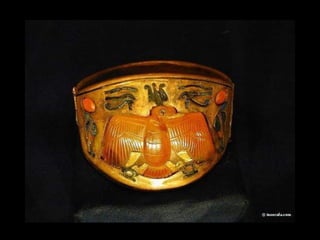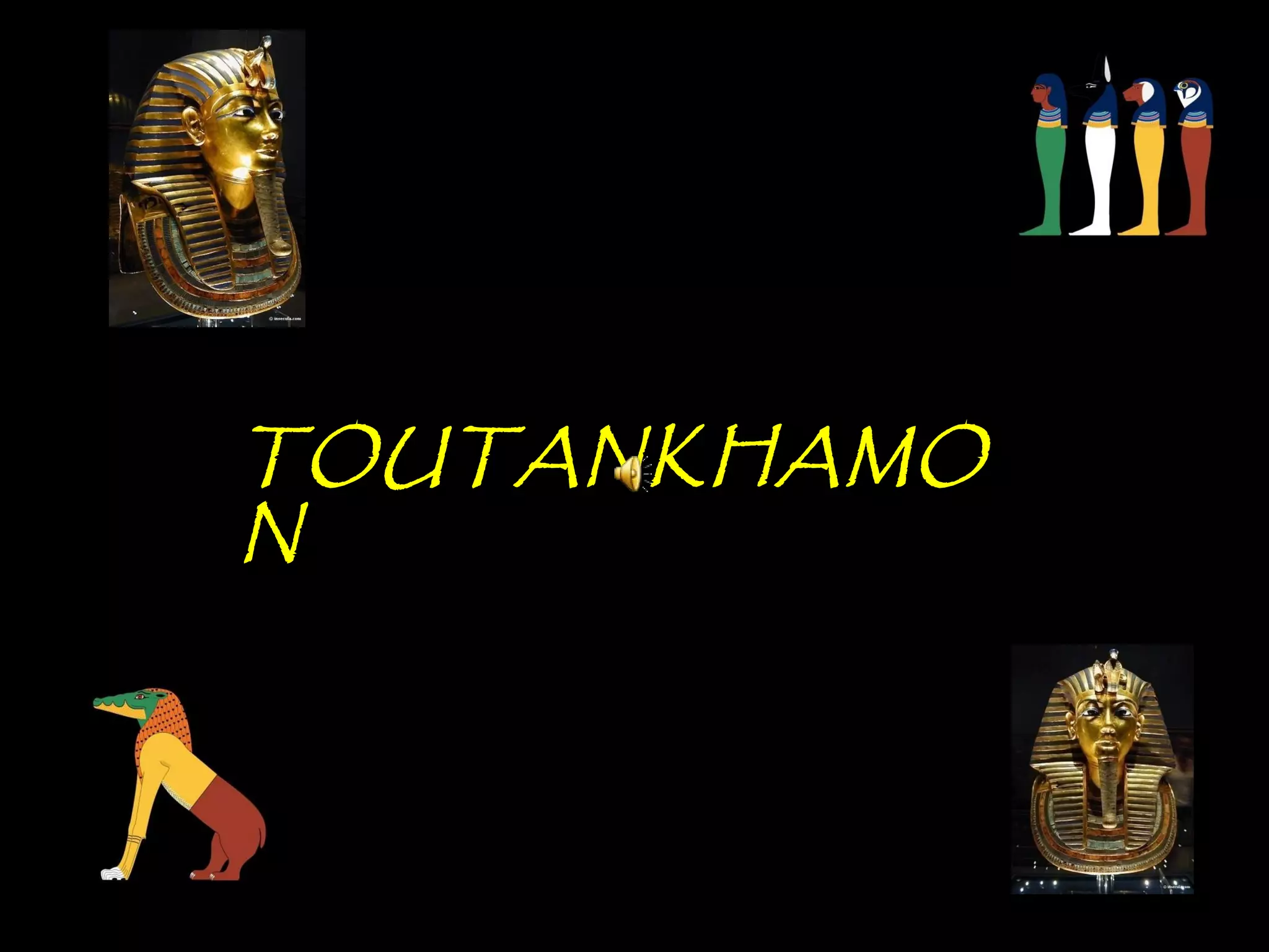 Toutankhamon, ancien pharaon d'Égypte ayant régné de -1335 à -1327 avant J.C., est célèbre pour sa tombe découverte en 1922, qui contenait de nombreux trésors presque intacts. La sépulture renfermait des objets emblématiques de l'époque, tels que des cercueils ornés, des statues, des bijoux et des amulettes, destinés à protéger le défunt dans l'au-delà. Le trésor de Toutankhamon, exposé au musée du Caire, témoigne de la richesse artistique et religieuse de l'Égypte ancienne.
