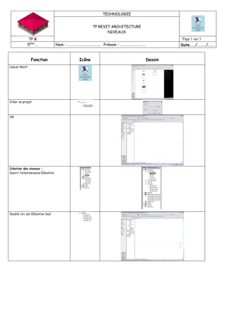Le document décrit le processus de création et de modification de niveaux dans Revit pour l'architecture. Il propose des instructions détaillées pour ajouter des niveaux, ajuster leurs hauteurs et renommer des éléments spécifiques. Les niveaux à créer incluent le fond de fouille, les fondations, le mur de soubassement, la dalle et plusieurs niveaux habitables.