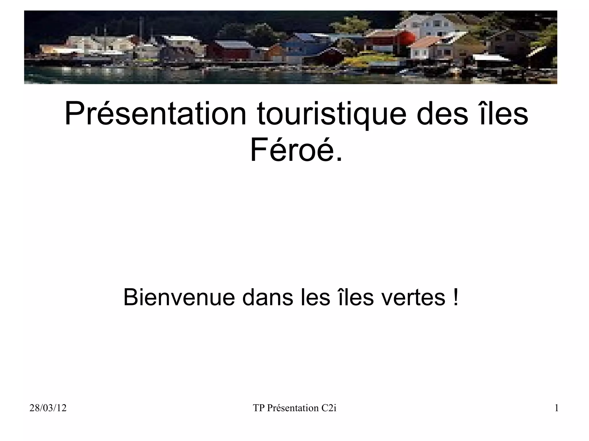 Les îles Féroé, un archipel de 17 îles au sud de l'Islande, sont présentées comme une destination idéale pour les vacances avec un climat tempéré. Le document aborde des thèmes tels que la mode, l'observation ornithologique et la pêche, notamment des statistiques sur les morues et les baleines. Torshavn, Vagar et Leirvik sont mentionnées comme les principales villes de l'archipel.
