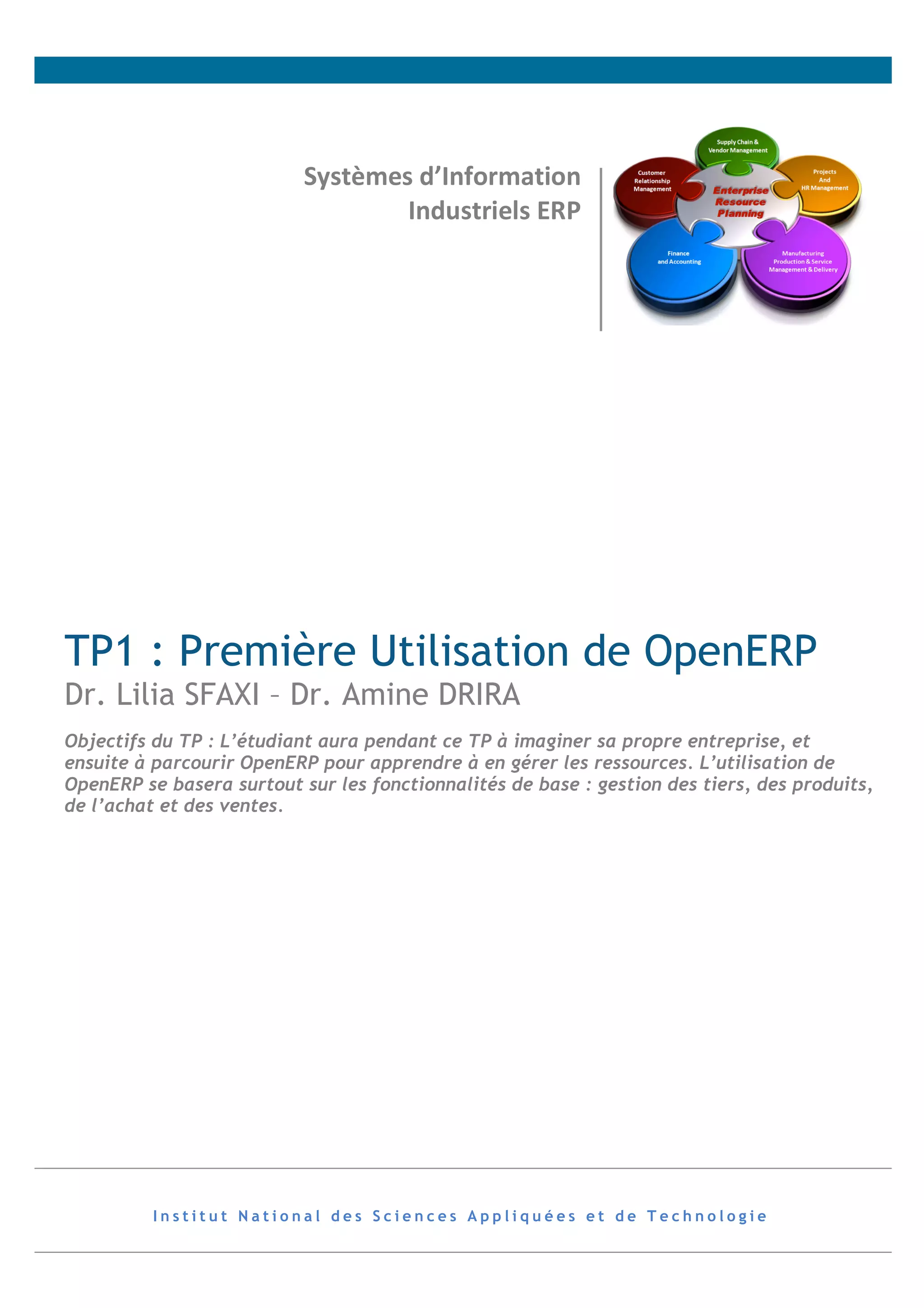 Ce document présente un TP sur l'utilisation de l'ERP OpenERP, où les étudiants doivent imaginer leur propre entreprise et apprendre à gérer ses ressources à l'aide des fonctionnalités de base telles que la gestion des tiers, des produits et des ventes. Il détaille l'installation, la création d'une base de données, la gestion des utilisateurs, l'ajout de modules, et la gestion des stocks, des ventes et des achats. Enfin, diverses activités sont proposées pour permettre aux étudiants de se familiariser avec l'outil en créant des documents et en enregistrant leurs opérations.