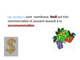 La tradition de Noël au Canada commence par la décoration d'un sapin de Noël à l'intérieur de la maison, avec des cadeaux déposés en dessous. La fête est marquée par des rassemblements familiaux, des traditions religieuses, des mets typiques comme la dinde et des activités sociales. Le Père Noël apporte les cadeaux soit le soir du 24 décembre, soit le matin du 25, selon les familles.