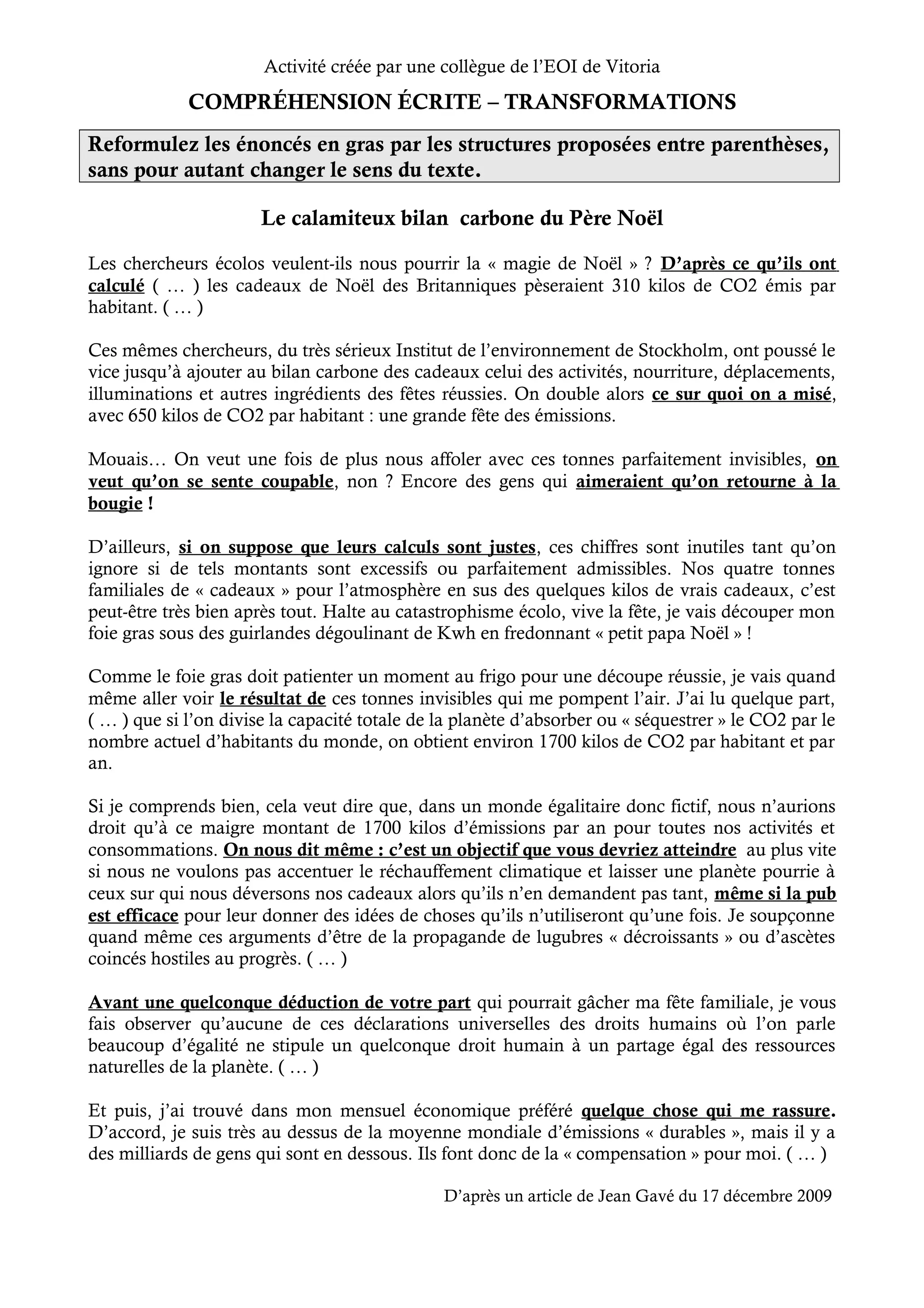 Le document aborde les préoccupations écologiques concernant l'impact carbone des célébrations de Noël, estimant que les émissions des cadeaux et festivités s'élèvent à 650 kg de CO2 par habitant. Il remet en question la pertinence des analyses des chercheurs, suggérant que des chiffres doivent être contextualisés pour éviter l'alarmisme. L'auteur exprime un désir de célébrer sans culpabilité, tout en reconnaissant des inégalités dans les émissions et en critiquant des idéologies décroissantes.