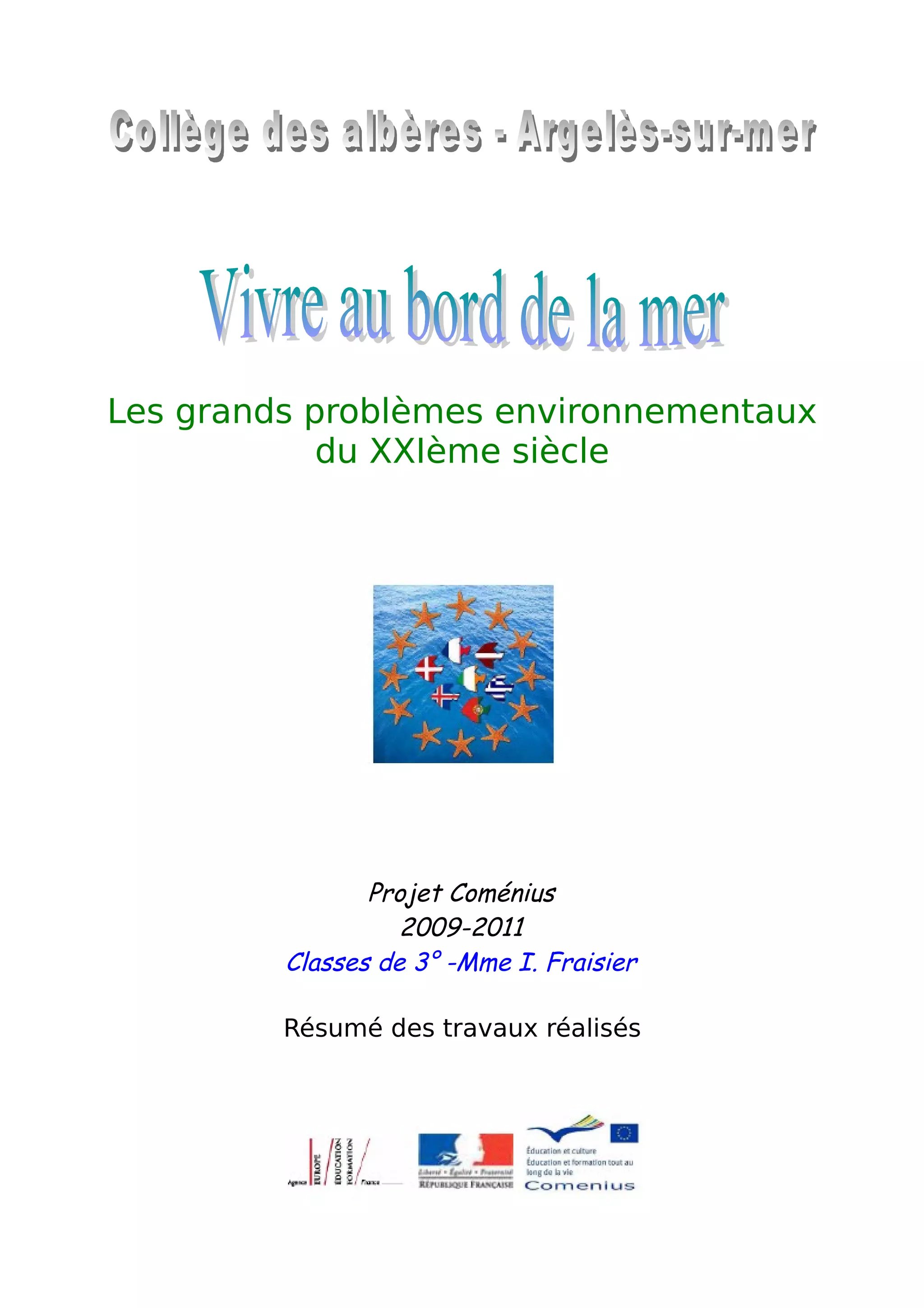 Le document aborde les grands problèmes environnementaux du XXIe siècle, notamment la crise de la biodiversité causée par l'activité humaine et le réchauffement climatique. Il souligne les conséquences de la dégradation de l'environnement sur la biodiversité et la santé humaine, ainsi que les urgentes actions à entreprendre pour préserver la planète et réduire les déchets. Enfin, il présente des initiatives locales pour protéger l'environnement, comme les efforts d'Argelès-sur-Mer et Collioure pour maintenir des plages propres et des eaux de baignade de qualité.