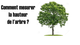 Le document traite de la mesure de la hauteur d'un arbre en utilisant des principes de trigonométrie, en spécifiant que la hauteur peut être calculée en multipliant la distance par la tangente de l'angle mesuré. Il mentionne également des concepts liés au cercle trigonométrique, y compris les relations entre les angles et les fonctions sinus et cosinus. Enfin, il introduit l'idée d'un mouvement angulaire du soleil par rapport à un point de référence.
