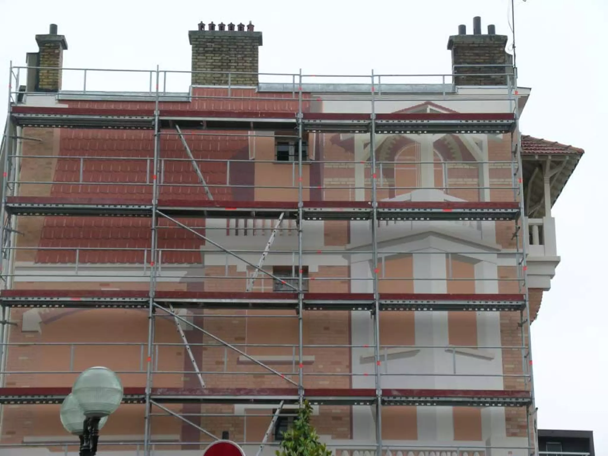 Fausse façade peinte en trompe-l'oeil à Enghien-les-Bains, place Mistinguett.