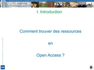 Le document présente des stratégies pour trouver des ressources documentaires en libre accès, en soulignant l'importance de définir ses recherches et d'utiliser efficacement des outils tels que les bases de données et les catalogues de bibliothèques. Il explique également les concepts d'open access, les types d'archives ouvertes et propose des ressources spécifiques selon les disciplines. Enfin, il introduit Docupole, un outil de formation en ligne destiné à aider les étudiants dans leurs travaux de recherche documentaire.