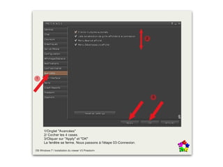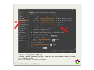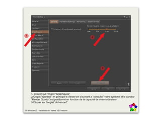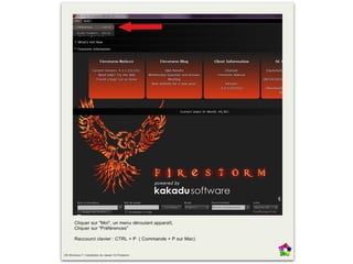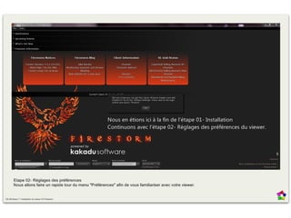 Le document présente un tutoriel pour l'installation et les réglages du viewer Firestorm version 4.3.1.31155 sur Windows, en se concentrant sur l'étape 02 relative aux préférences. Il est spécifiquement conçu pour la grille OpenSim et inclut un lien vers le site de Firestorm et de Francogrid. Le document mentionne également que des photos et réalisations sont fournies par l'utilisateur pralineb.