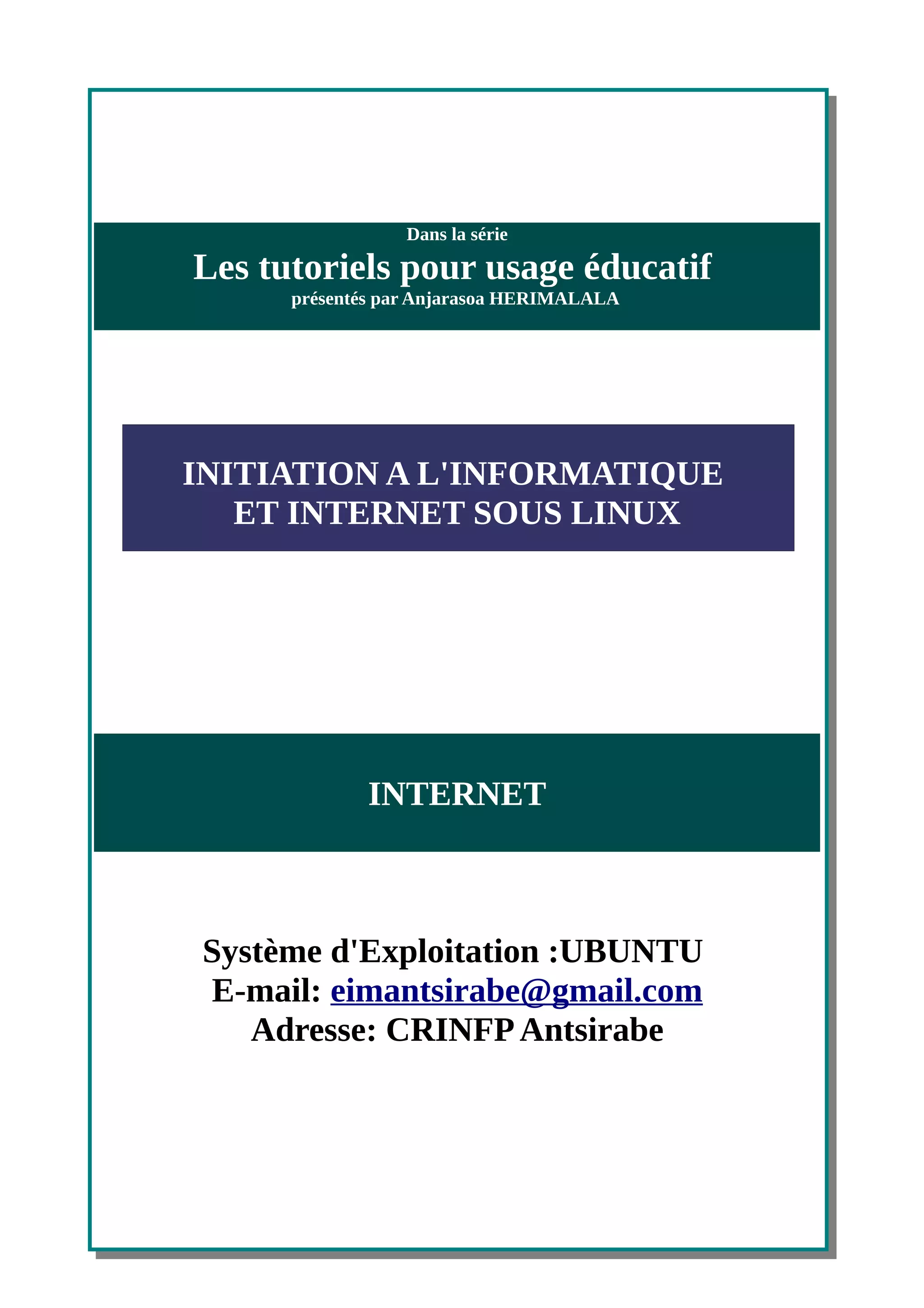 Le document est un tutoriel complet sur l'utilisation d'Internet et des technologies associées, en se concentrant sur le système d'exploitation Ubuntu. Il couvre l'origine et la structure des réseaux, les types de connexions (Wi-Fi, CPL, satellite), et décrit divers domaines d'utilisation d'Internet tels que le web, les emails, les forums et le téléchargement multimédia. Le document propose également des conseils pour la recherche en ligne, la gestion des emails, et inclut un lexique des termes courants liés à Internet.