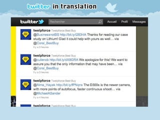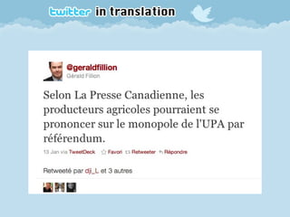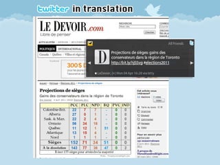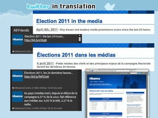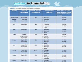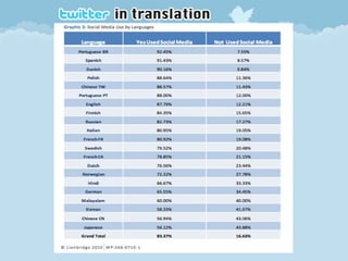 Le document traite de l'impact des médias sociaux sur la profession de la traduction, soulignant que les consommateurs en ligne deviennent des créateurs de contenu. Il met en évidence la préférence des utilisateurs pour du contenu dans leur langue locale, et note les défis liés à la traduction automatique. Enfin, il suggère que l'impact passif des médias sociaux, en tant que vecteurs d'opinions et recommandations, pourrait surpasser leur impact actif.
