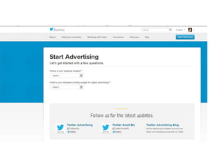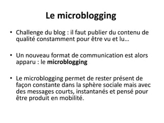 Le document décrit les fondamentaux du marketing sur Twitter, en soulignant l'importance du microblogging pour la communication en temps réel et l'engagement des marques. Il présente des stratégies pour développer un compte Twitter efficace, y compris l'utilisation de tweets pertinents, de hashtags et de mentions, ainsi que des conseils pour interagir avec les abonnés. Les options de marketing payantes, telles que les tweets sponsorisés et les comptes sponsorisés, sont également abordées comme moyen d'atteindre un plus large public.