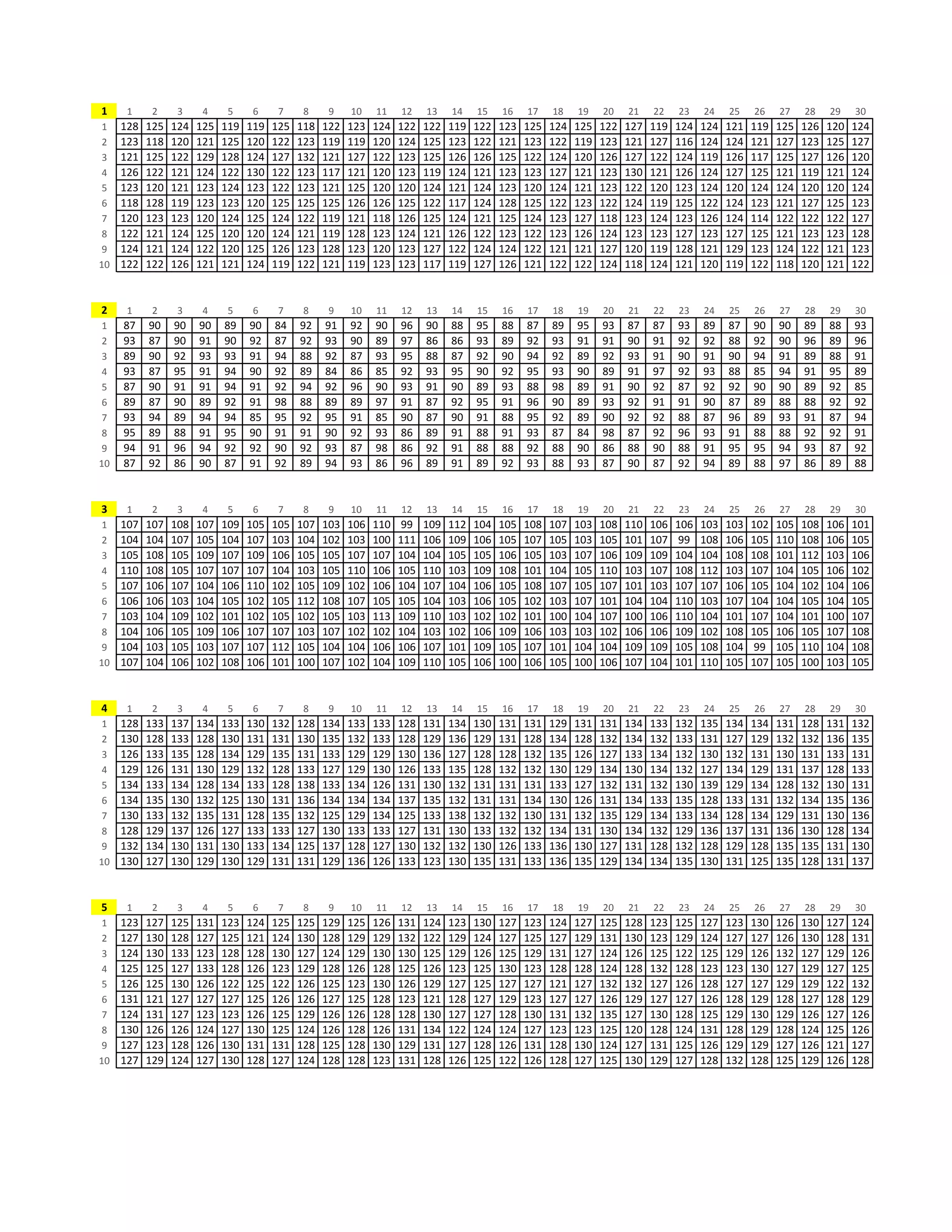 Le document présente une série de nombres organisée en lignes. Ces chiffres semblent représenter des données de mesure ou des résultats d'évaluation. L'ensemble suggère une analyse quantitative sans contexte explicite fourni.