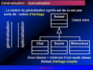 Le document explique l'UML (Unified Modeling Language) comme un langage de modélisation standard permettant de représenter des systèmes à travers différents diagrammes. Il détaille les caractéristiques d'UML, son utilisation pour définir les exigences d'un logiciel, et les types de diagrammes disponibles, notamment les diagrammes de cas d'utilisation et de classes. Enfin, il aborde les concepts associés aux diagrammes de classes, y compris les relations entre classes et les notions de généralisation et de spécialisation.