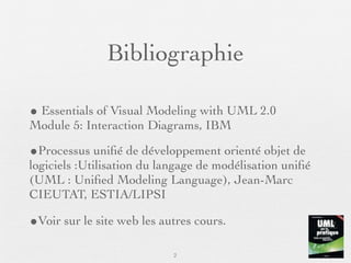 Le document traite de l'analyse et de la conception de systèmes à l'aide de diagrammes de séquence UML, qui décrivent les interactions entre objets pour représenter des cas d'utilisation. Il explique comment modéliser le comportement dynamique d'un système et inclut des exemples de scénarios, d'interactions et d'enchaînements alternatifs. En outre, il souligne l'importance de bien contextualiser les diagrammes et d'identifier les acteurs et les résultats observables.