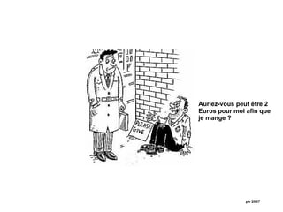 Une personne demande de l'argent pour manger, mais elle refuse diverses alternatives comme acheter de la bière ou voir un match de football. Elle explique qu'elle a cessé de boire, de jouer au football, de conduire une moto et d'avoir des relations sexuelles. L'autre personne propose d'inviter cette personne à un repas, soulignant l'importance de montrer à sa femme comment on évolue après avoir arrêté ces comportements.