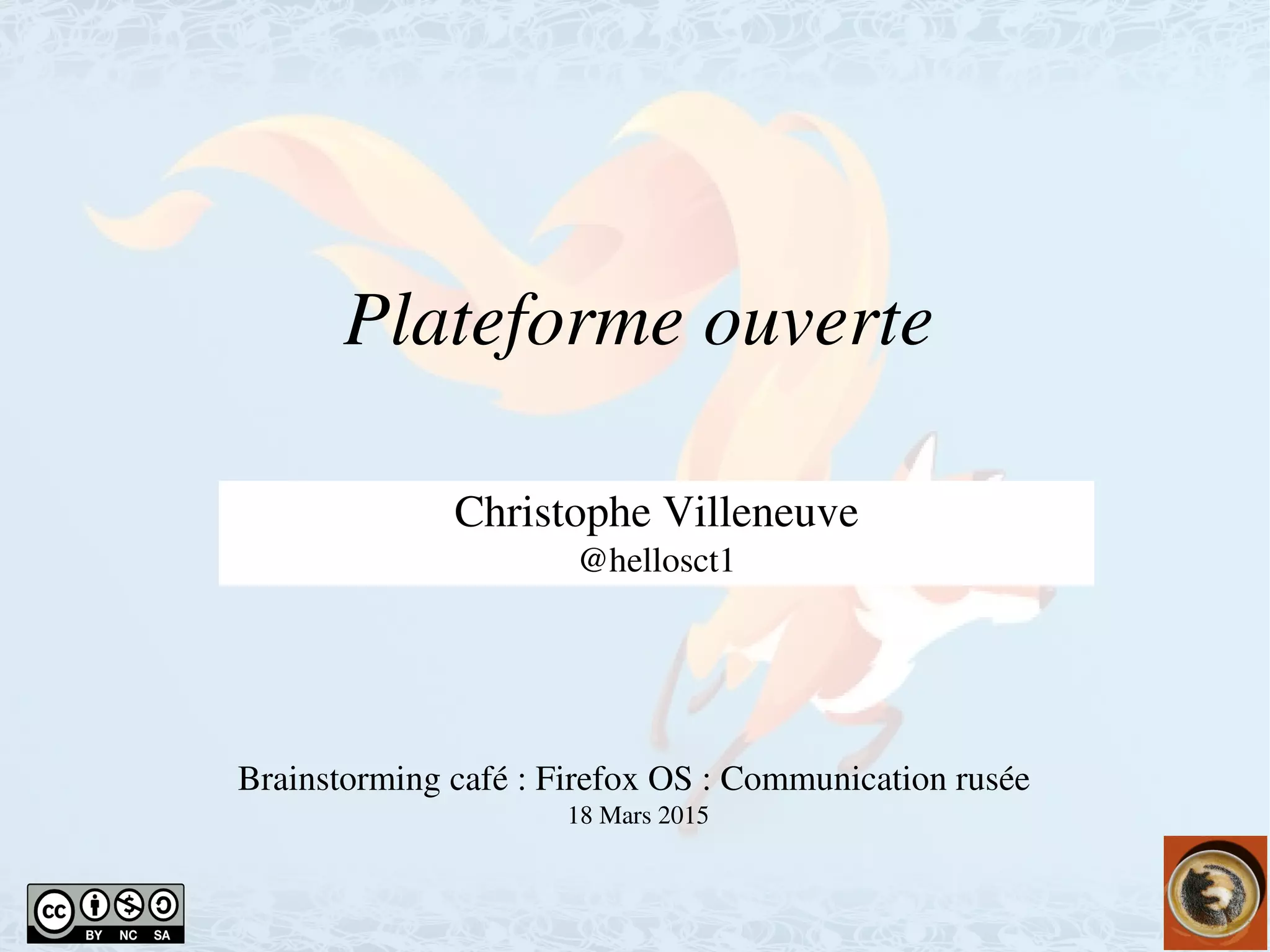 Le document présente une discussion sur Firefox OS en tant que plateforme ouverte et mobile, avec un accent sur l'importance du contrôle des données et du contenu pour les utilisateurs. Il mentionne également les compétences nécessaires pour naviguer dans l'écosystème web et les licences associées à cette plateforme. Des ressources supplémentaires et des liens sont fournis pour approfondir le sujet.