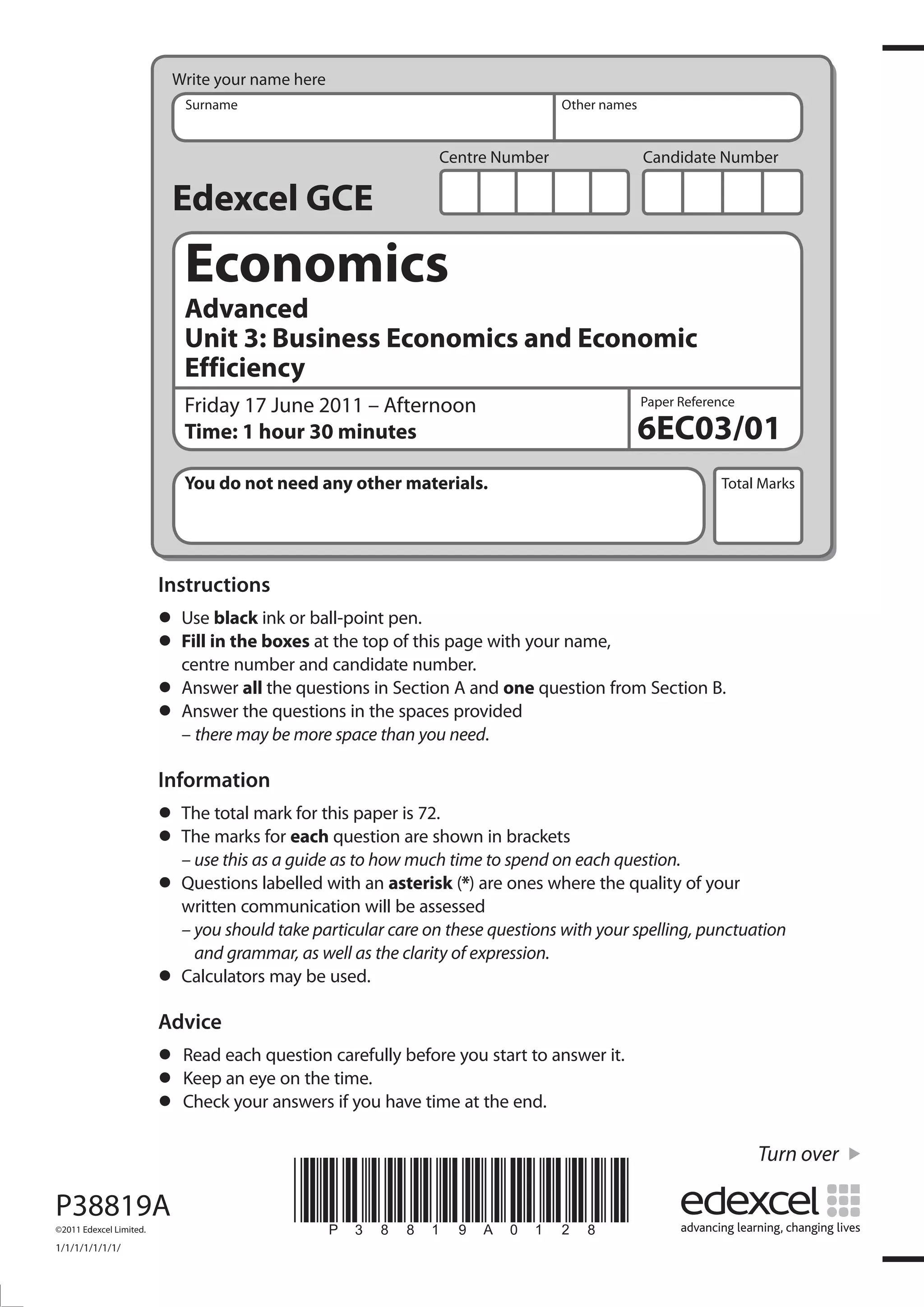 Le document est une épreuve d'examen d'économie d'entreprise comportant des instructions pour la réalisation de l'examen. Les candidats doivent répondre à des questions sur des concepts économiques clés, tels que la concurrence parfaite et la collusion, en utilisant les données fournies. Les informations importantes sur le format de l'examen et les critères de notation sont également incluses.