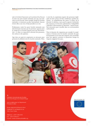 Le document traite des principes fondamentaux et des valeurs humanitaires, en se concentrant sur l'universalité et l'égalité entre les sociétés nationales du mouvement international de la Croix-Rouge. Il souligne l'importance de la coopération sans discrimination et la nécessité de respecter la diversité pour favoriser la solidarité entre ces sociétés. Les personnes impliquées doivent posséder des qualités humaines telles que la tolérance, l'altruisme et la capacité à s'adapter culturellement.