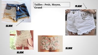 Le document présente des informations sur les tailles de produits et leurs prix correspondants. Les prix varient selon la taille, avec des options allant de petit à très grand. Les données incluent également des tailles spécifiques pour les chaussures et leurs prix associés.