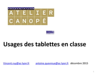 Le document traite des usages des tablettes en classe, en abordant leurs spécificités, avantages, inconvénients et applications pédagogiques. Il met en lumière les différents systèmes d'exploitation disponibles et fournit des recommandations pédagogiques pour l'intégration des tablettes dans l'éducation. Enfin, il évoque l'importance de l'authentification Wi-Fi et propose des activités et outils pour enrichir l'apprentissage.