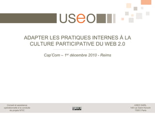 Le document présente les évolutions des pratiques internes des collectivités vers une culture participative influencée par le web 2.0. Il souligne l'importance de l'écoute, de l'engagement et de la transparence dans la gouvernance, tout en utilisant les réseaux sociaux d'entreprise pour mobiliser les expertises. Enfin, il appelle à investir dans des actions durables et à établir un cadre favorable pour faciliter ces transformations organisationnelles.