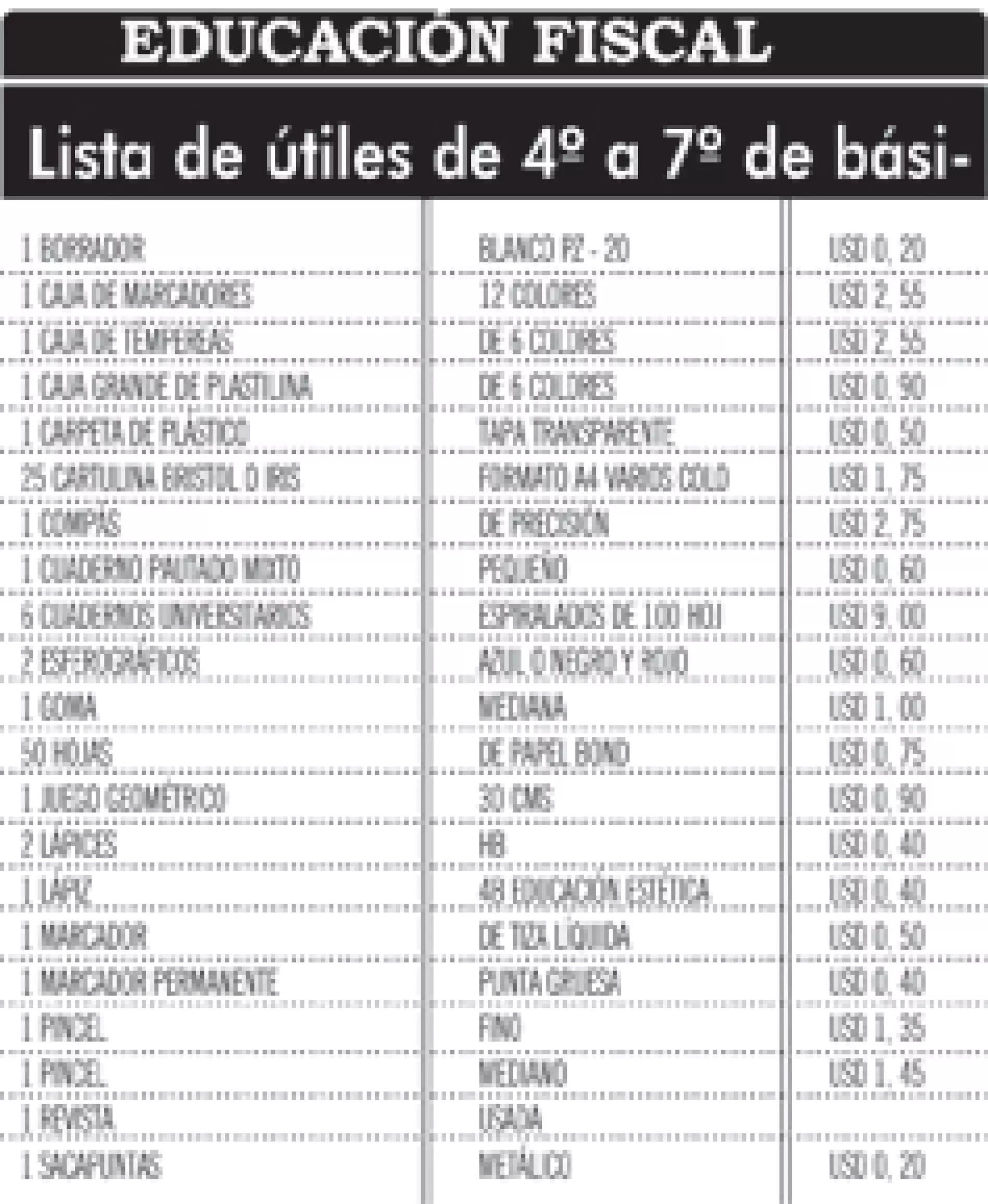 Útiles para 2 y 3 de básica