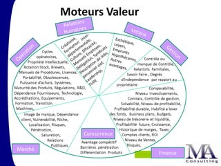 La valorisation d'entreprise est déterminée par divers facteurs, dont la valeur incorporelle, qui est calculée en soustrayant la valeur de liquidation d'une entreprise de sa valeur potentielle de vente. Les méthodes de valorisation incluent la comparaison avec le marché et l'évaluation des actifs nets, prenant en compte le profit historique et les perspectives économiques. Les conflits d'intérêts entre acheteurs et vendeurs peuvent influencer négativement la perception de la valeur par rapport au prix réel de vente.