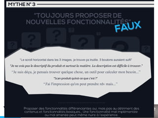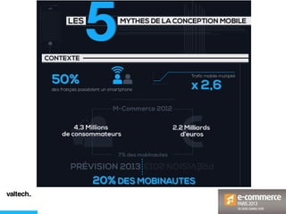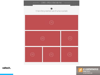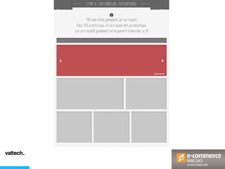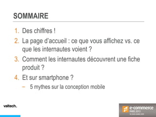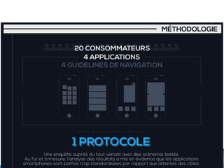 Le document analyse les comportements des consommateurs sur les sites e-commerce, mettant en évidence des statistiques clés sur le e-commerce et le m-commerce en France. Il aborde également la perception des pages d'accueil et des fiches produits par les internautes, identifiant des tendances et des exigences concernant la navigation et le contenu. Enfin, des conseils sont donnés sur l'adaptation des guidelines de conception pour améliorer l'expérience utilisateur.