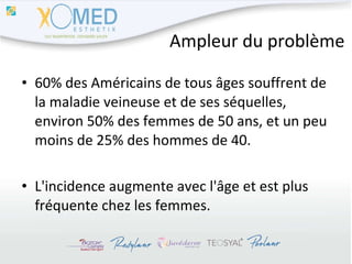 Environ 60% des Américains souffrent de maladies veineuses, avec une incidence accrue due à l'âge et à des facteurs héréditaires. Les varices provoquent divers symptômes allant de l'inconfort esthétique à des ulcères veineux, nécessitant un diagnostic précis et des traitements variés tels que la compression, la sclérothérapie et la chirurgie. Les mesures préventives, comme l'exercice régulier et le port de bas de compression, sont essentielles pour gérer la maladie veineuse.