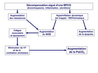 Le document présente la ventilation non invasive (VNI) et son intérêt dans le traitement de différentes pathologies respiratoires. Il souligne l'importance des réglages initiaux et des ajustements selon la sévérité des conditions cliniques, ainsi que les aspects physiologiques impliqués. Des recommandations spécifiques sont fournies pour optimiser l'efficacité de la VNI, en tenant compte de l'asynchronisme et des fuites possibles.