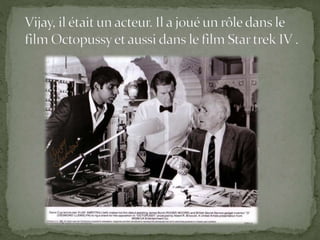 Vijay Amritraj est un joueur de tennis et acteur indien originaire de Chennai, ayant eu du succès dans des tournois de tennis, y compris des compétitions de Grand Slam. Il a été capitaine de l'équipe indienne de la Coupe Davis de 1970 à 1980 et a deux frères, Anand et Ashok, qui jouent également au tennis. Il est marié à Shyamala et a deux fils, Prakash et Vikram.