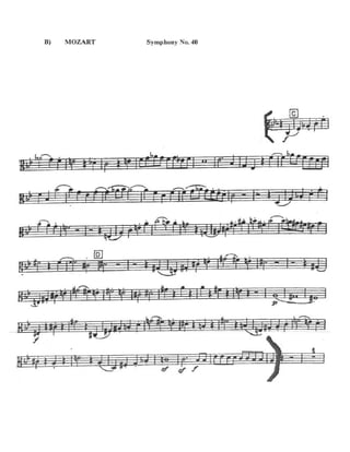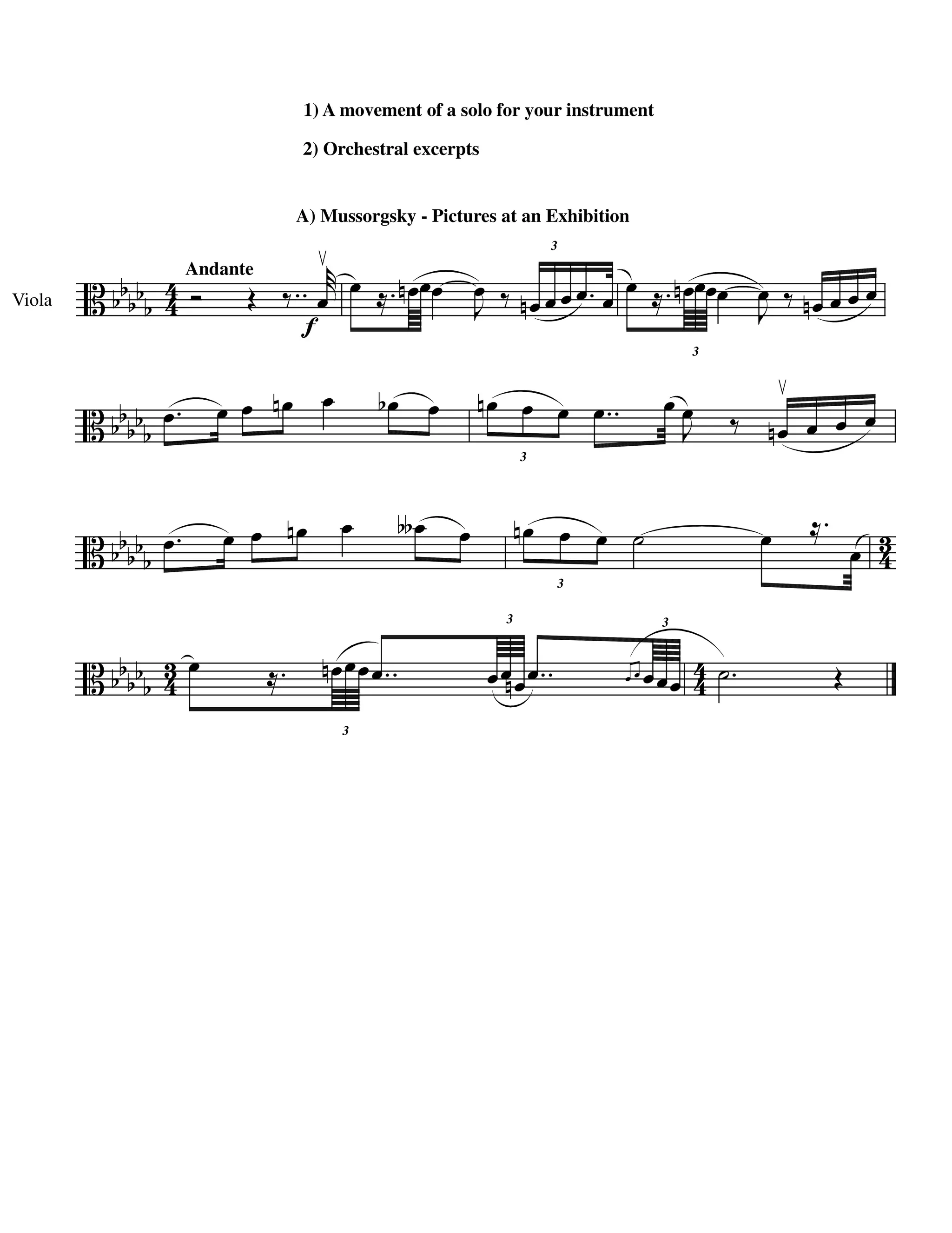 Le document comprend des extraits musicaux pour instrument solo et orchestral, notamment des œuvres de Mussorgsky et Beethoven. Il présente des indications diverses telles que des tempos et des nuances. Les partitions sont dénotées par des éléments de notation dont on pourrait concevoir les interprétations.