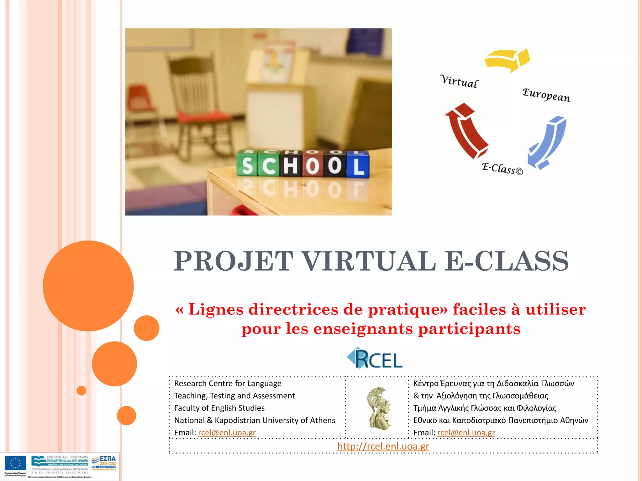 Le projet Virtual E-Class invite les enseignants à participer à des activités collaboratives en ligne pour enrichir l'enseignement des langues étrangères, en facilitant la mise en relation entre classes de différents pays. Les enseignants peuvent s'inscrire via le site web du projet et le coordinateur les aide à trouver des classes partenaires en partageant des informations sur les sujets et niveaux d'enseignement. Le projet promeut également l'utilisation de nouvelles technologies et d'outils innovants pour rendre l'apprentissage plus interactif et créatif.
