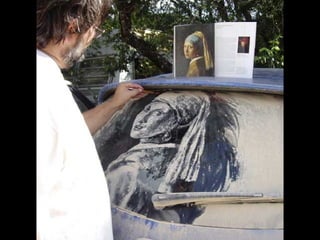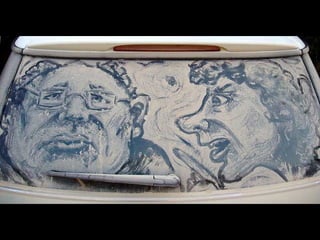 Scott Wade est un artiste qui transforme les pare-brises sales en œuvres d'art en réalisant des dessins et des reproductions célèbres. Ses créations incluent des références à des tableaux connus comme 'A Friend in Need' de C.M. Coolidge et 'Mona Lisa' de Da Vinci. Il utilise la poussière des voitures pour exprimer sa créativité de manière originale.