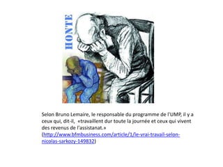 Le document présente un appel à voter pour le candidat 'Biquette' en France, visant à promouvoir la justice et l'égalité tout en dénonçant les préjugés contre les chômeurs et les assistés. Il critique la dichotomie entre travailleurs et assistés, suggérant que la droite politise cette division sociale. Le texte met en avant que la gauche se laisse influencer par ce discours dominant.
