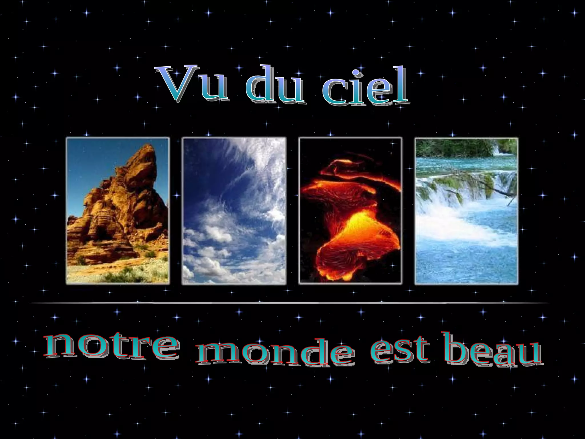 Le document décrit la beauté de la Terre à travers divers paysages et sites naturels impressionnants à travers le monde. Il souligne l'importance de préserver notre planète pour les générations futures et évoque la nécessité de rester vigilant face aux menaces environnementales. La terre est présentée comme une maison commune, dont la beauté se renouvelle constamment.