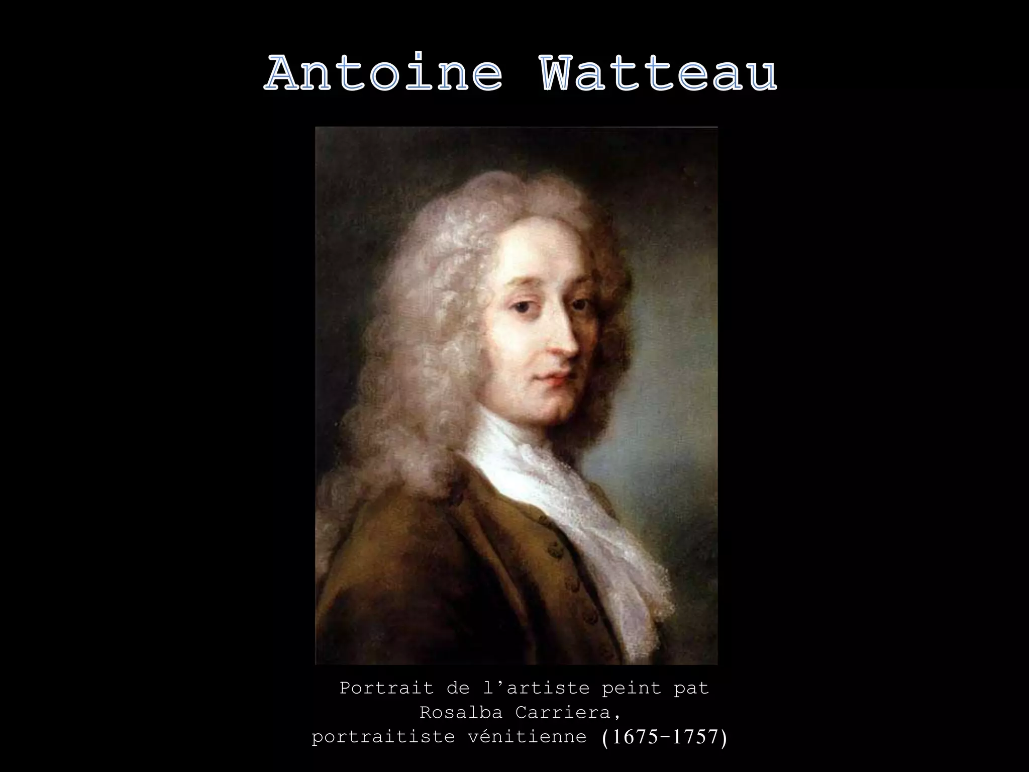 Le document présente le portrait de l'artiste peintre vénitienne Rosalba Carriera, reconnue pour ses portraits du XVIIIe siècle. Il évoque plusieurs de ses œuvres, illustrant son style et ses thèmes, tels que l'amour, la comédie et des scènes galantes. Carriera est soulignée comme une figure importante dans l'art du portrait à Venise.