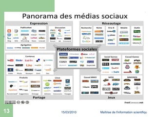 Le document présente le concept du Web 2.0, qui permet aux utilisateurs de devenir des acteurs et contributeurs du réseau grâce à des outils collaboratifs tels que les blogs, wikis et fils RSS. Il aborde les dimensions technologiques, sociales et économiques qui définissent cette nouvelle ère du web, ainsi que des comparaisons avec le Web 1.0. Enfin, il explique le fonctionnement et les avantages des différents outils, notamment pour la veille informationnelle et le partage de contenu.