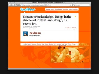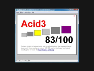 Le document traite des meilleures pratiques en matière de conception web, mettant en avant l'importance de comprendre le contenu avant le design et de concevoir directement dans le navigateur. Il aborde également la nécessité d'une flexibilité dans l'affichage des sites web à travers différents navigateurs, ainsi que des conseils sur la rédaction et les URL. Enfin, des outils comme Modernizr sont mentionnés pour détecter les capacités des navigateurs, pour améliorer l'expérience utilisateur.