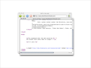 Le document présente une initiation à Internet, en expliquant ses composantes essentielles telles que le réseau, les protocoles TCP/IP, et les fichiers divers accessibles en ligne. Il aborde également la distinction entre le côté client et serveur des applications Internet, tout en mentionnant des outils et langages de programmation comme Linux, PHP et MySQL. Le tout est illustré par des références à des ressources web et des adresses IP.