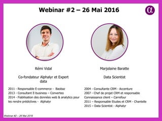 Le webinar du 26 mai 2016 présente les étapes pour établir une stratégie data driven, incluant la définition des objectifs, KPI et cibles, ainsi que la construction de tableaux de bord décisionnels. Un tableau de bord est un outil visuel crucial pour piloter l'activité, identifier les tendances et faciliter la prise de décision au sein de l'entreprise. Les intervenants abordent également les outils disponibles et les critères d'un dashboard réussi.