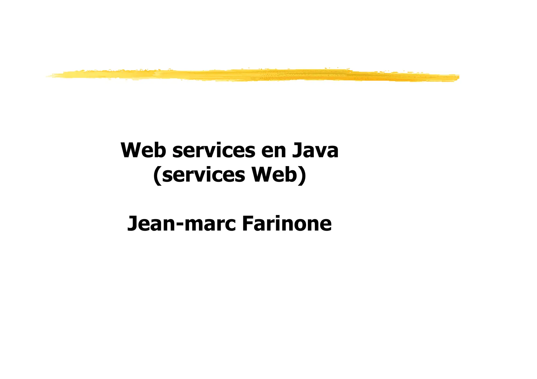 Le document présente une introduction aux services web en Java, détaillant leur architecture orientée objet et distribuée, ainsi que les protocoles XML utilisés comme SOAP. Il explique le rôle des contrats WSDL, la mise en œuvre avec des outils comme Apache Axis, et fournit des exemples de développement pour un client et un serveur de services web. Enfin, il aborde le suivi des échanges de messages avec TCPMonitor et fournit des ressources pour approfondir le sujet.