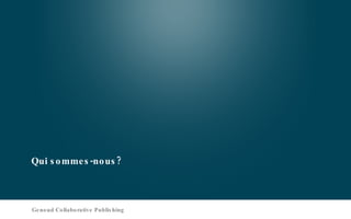 Genoud Collaborative Publishing propose des solutions web-to-print pour la gestion décentralisée et centralisée de supports papier. Le service inclut des gabarits personnalisables, une intégration à des banques d'images et un accès en ligne sécurisé, garantissant une utilisation facile et économique. Les utilisateurs peuvent bénéficier d'une gestion efficace tout en renforçant l'identité de leur marque grâce à des projets configurables en plusieurs langues.