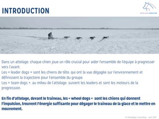 Wheeldogs Consulting accompagne les entrepreneurs et les intrapreneurs dans la mise en œuvre de projets digitaux en se concentrant sur la formation, la conception et l'accompagnement. L'objectif est de démarrer des projets rapidement, en moins de 6 mois, en utilisant des outils adaptés et en impliquant les équipes dès le début. L'approche est centrée sur les besoins des clients et favorise l'innovation pratique plutôt que théorique.