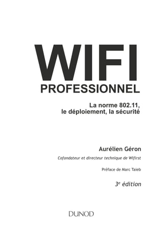 Le document traite du développement et de l'importance des réseaux Wi-Fi professionnels, en mettant l'accent sur la norme 802.11 et ses applications dans divers contextes. Il souligne l'évolution de la technologie, ses bénéfices économiques, et les préoccupations liées à la sécurité. L'ouvrage d'Aurélien Géron se distingue par sa clarté et sa pédagogie, offrant une vision d'ensemble sur le wifi face aux autres normes sans fil.