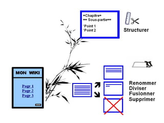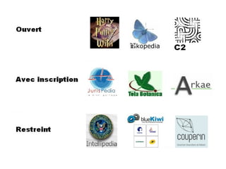 Le document traite des wikis comme des outils pour des projets collaboratifs, explorant leur définition, l'évolution de Wikipédia et d'autres plateformes similaires. Il présente également des conseils pour la création, l'évaluation et la gestion de wikis dans divers contextes, y compris l'éducation. Enfin, il aborde l'importance de l'intelligence collective et collaborative dans ces environnements numériques.